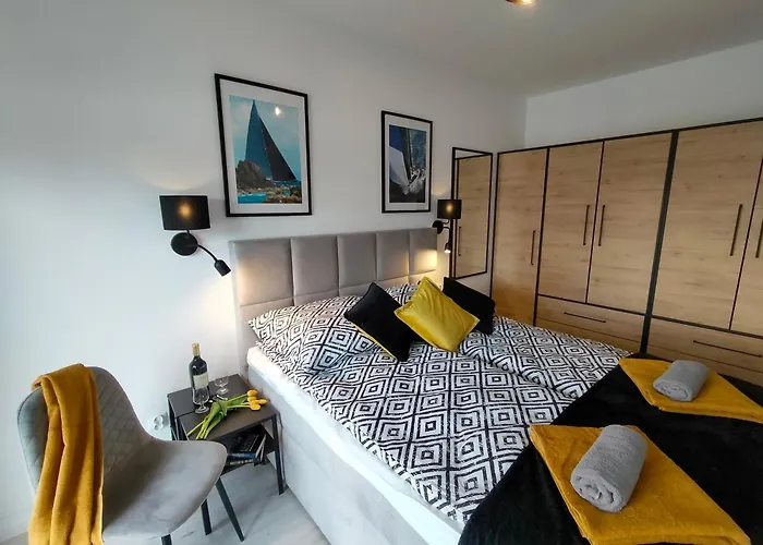 Cicha Przystan Apartament Regata ferielejlighed har udsigt over haven og ligger 2 km fra Kołobrzeg Mole. Denne ferielejlighed måler 39 m^2 og har 1 soveværelser, 1 badeværelser og et tekøkken.